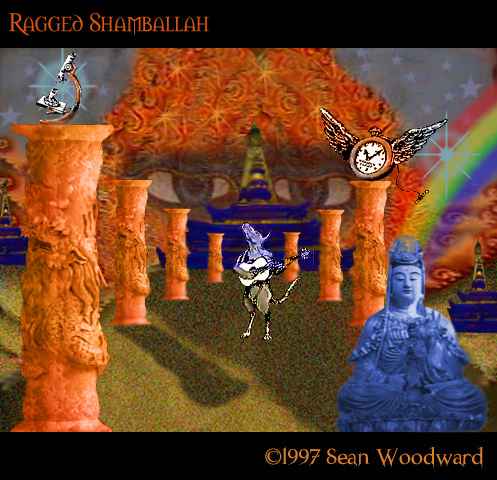 These images were created after visiting the Ragged Edge Press` website and seeing their call for mailart created using their rubber stamps. Unfortunately I did not have any (though would love some!) so used the sinister Netscape Shift-Right-Click to help me pretend I had. The background images are ones I previously created using video footage shot in Boston for the Ragged Boston piece and Nepal for the Ragged Shambalah piece.